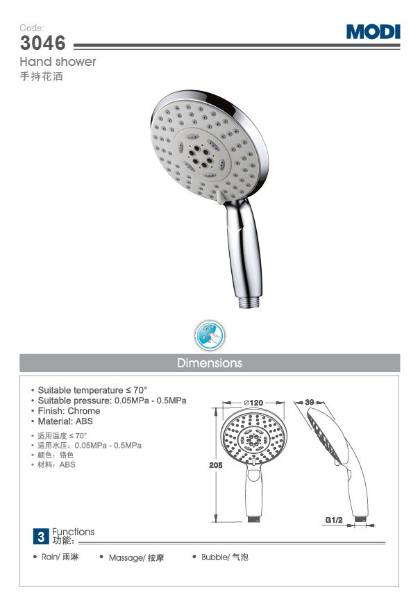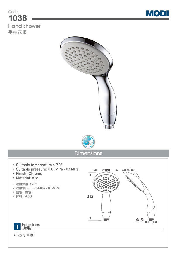 您现在的位置是: 首页 > 产品中心 > 花洒系列 > 手持花洒 / 挂墙花洒系列 > 038/046系列